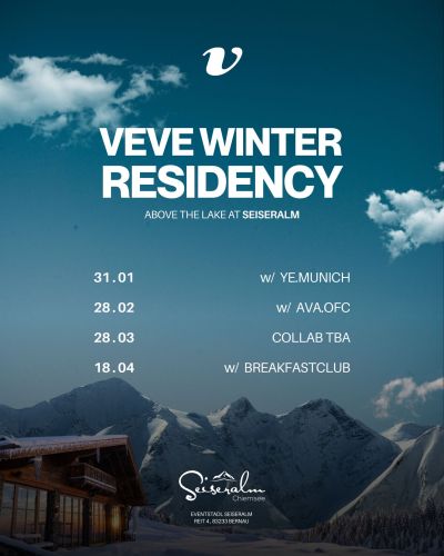 Am 31.01.2026 bringen YE Event und veve.event elektronische Musik auf die Seiseralm in Bernau. Von 12:00 bis 22:00 Uhr erwartet euch ein einzigartiges Winterevent mit Alpenpanorama, besonderer Atmosphäre und erstklassigem Sound.